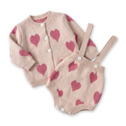 Baby Heart Pattern Knit Cardigan & Romper Set