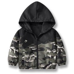 迷彩柄とブラックのバイカラーがクールな1枚。